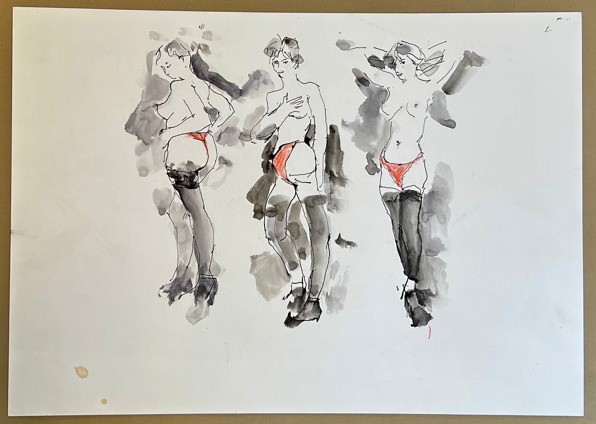 A nude study in stockings & red knickers, Peter Collins ARCA